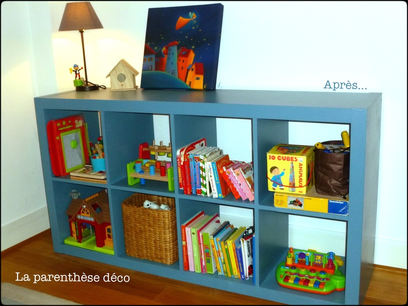 […] ne vous présente pas le bateau pirate Playmobil, posé sur un meuble Ikea Expedit customisé (vu ici) et qui lui sert de rangement pour ses livres et […]