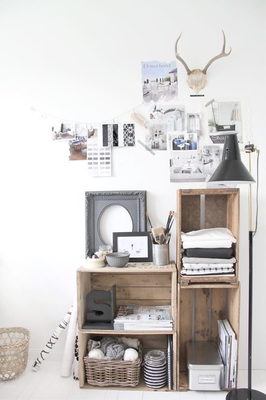 Composition d’étagères avec des caisses en bois