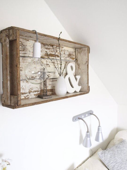Etagère murale avec une caisse en bois