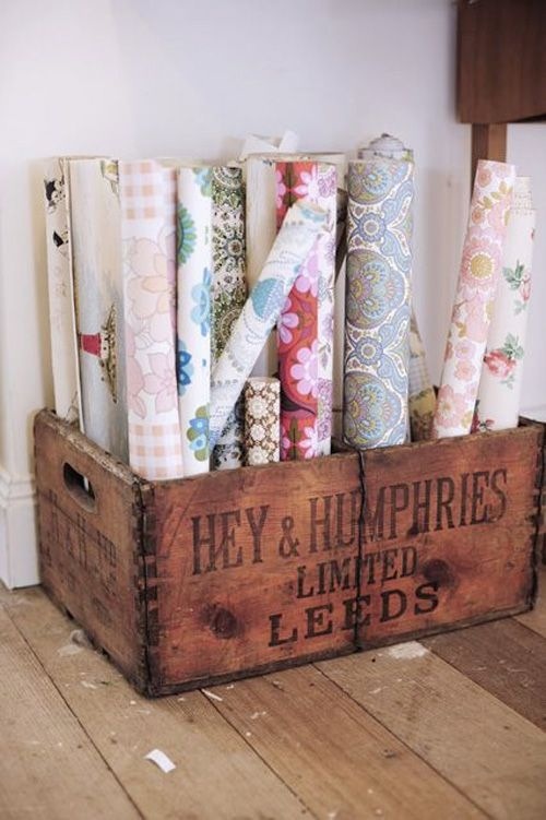 Caisse en bois pour ranger les rouleaux de papier cadeau
