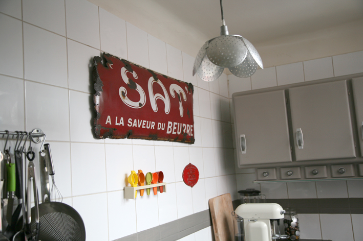 Cuisine Madame la Broc : enseigne vintage et suspension recup’